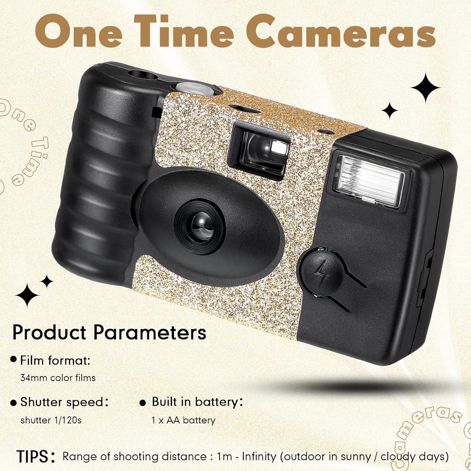 Capture every special moment with ease using the 4 Pcs Disposable Camera Single Use Film Camera. This convenient pack includes four classic-style disposable cameras, each designed for one-time use. Featuring built-in flash and color film, these cameras are perfect for weddings, anniversaries, travel adventures, camping trips, parties, and more.